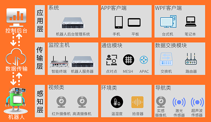 紅外測溫巡邏機器人可用于全國范圍的平安城市、智能交通、視頻云等多個項目中,通過現(xiàn)場值守、電話值班多種形式保障系統(tǒng)和設備正常運行,保障社會治安穩(wěn)定和道路安全。產(chǎn)品技術特點