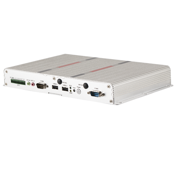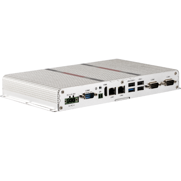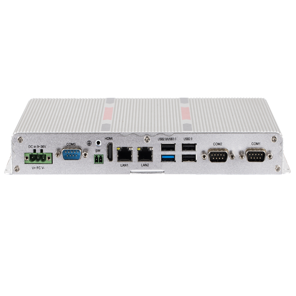 外觀設(shè)計 :鋁型材一體成型,純平面流線型設(shè)計,科技時尚穩(wěn)定可靠 :純工業(yè)無風(fēng)扇設(shè)計,大面積鋁鰭散熱,機箱可抗接觸式6Kv強電磁干擾;寬壓DC9-36V輸入或DC12V輸入(可選)高性能 :J1900處理器 接口豐富 :2*LAN(Realtek),5*COM,6*USB,8路GPIO, 1*SW(遠程開關(guān)),1*HDMI,1*Audio,支持一個Msata ,一個2.5寸硬盤位,一個MINI PCIE(默認WIFI,可選4G)