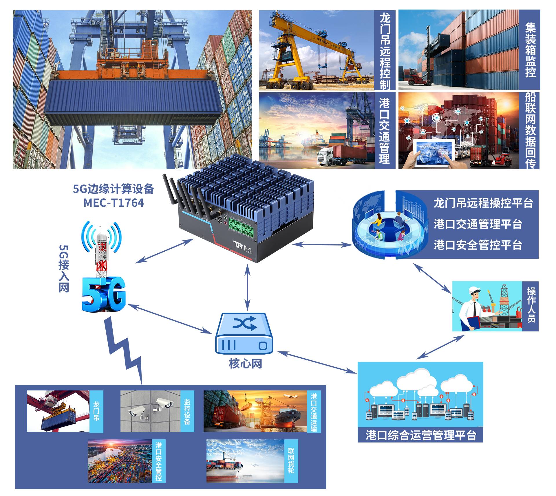 特控5G高性能工控機(jī)MEC-T1764,為智慧港口提供有力保證。